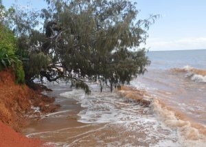 The region has already started to see some impacts from the cyclone, with water pummeling the Red Cliffs, seeping over roads and lapping bridges in the Scarborough and Redcliffe regions.